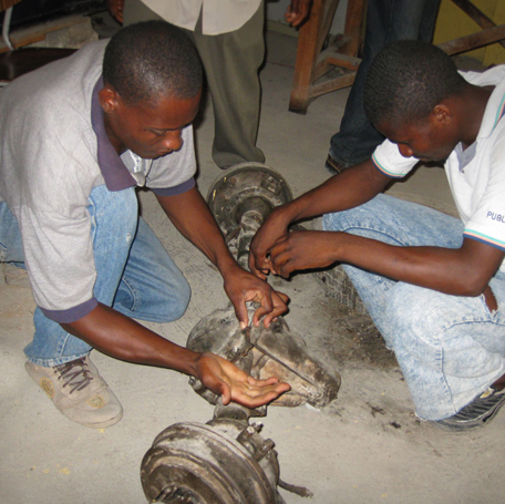 Wir engagieren uns seit Jahren für den Aufbau von Berufsschulen in Haiti. In den Schulen werden junge Erwachsene zu Maurern oder Schneiderinnen ausgebildet.